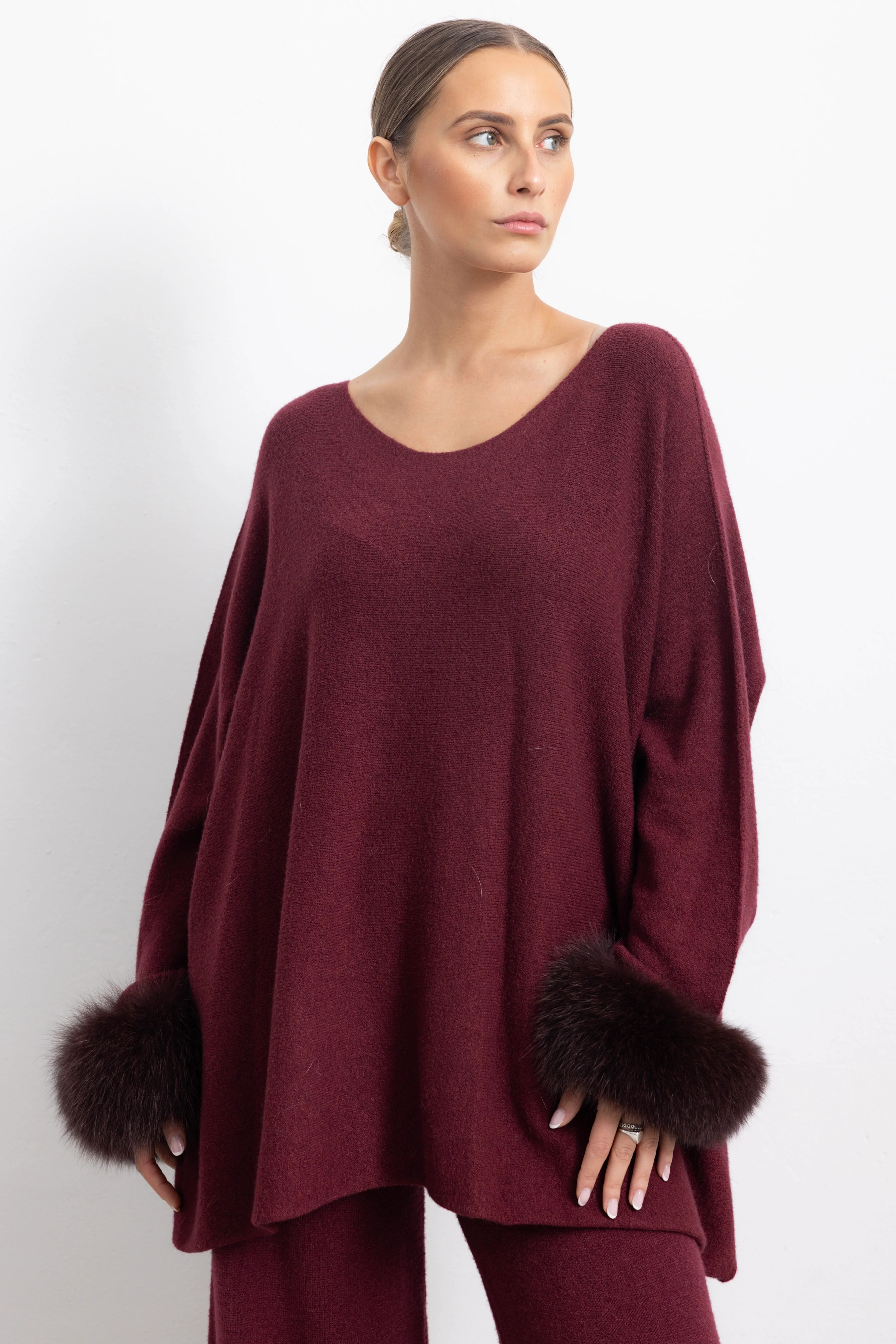 AMALFI - Completo con polsini in volpe (Bordeaux)