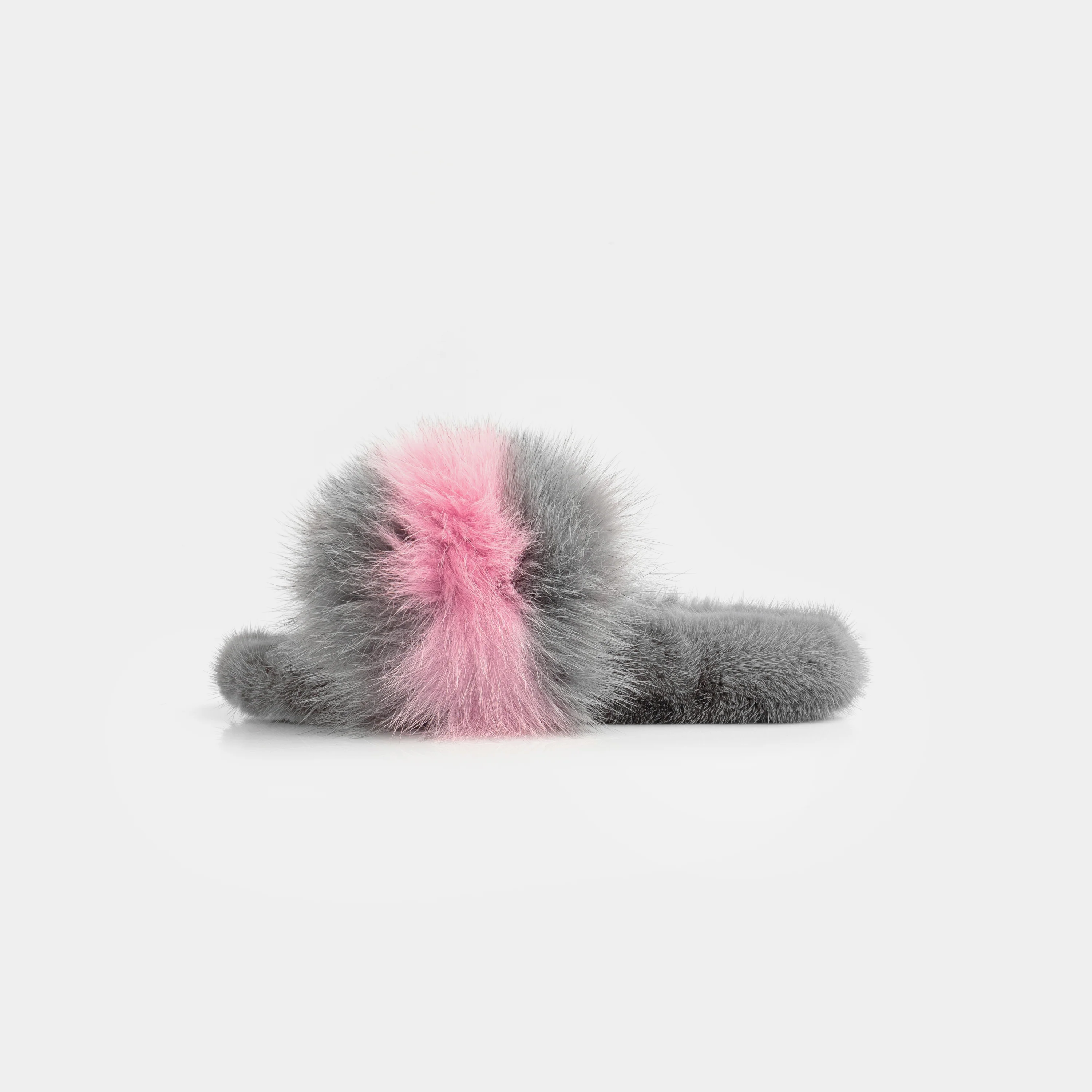 ASPEN - Slipper con fascia in volpe e bordatura in visone (Grigio/Rosa)