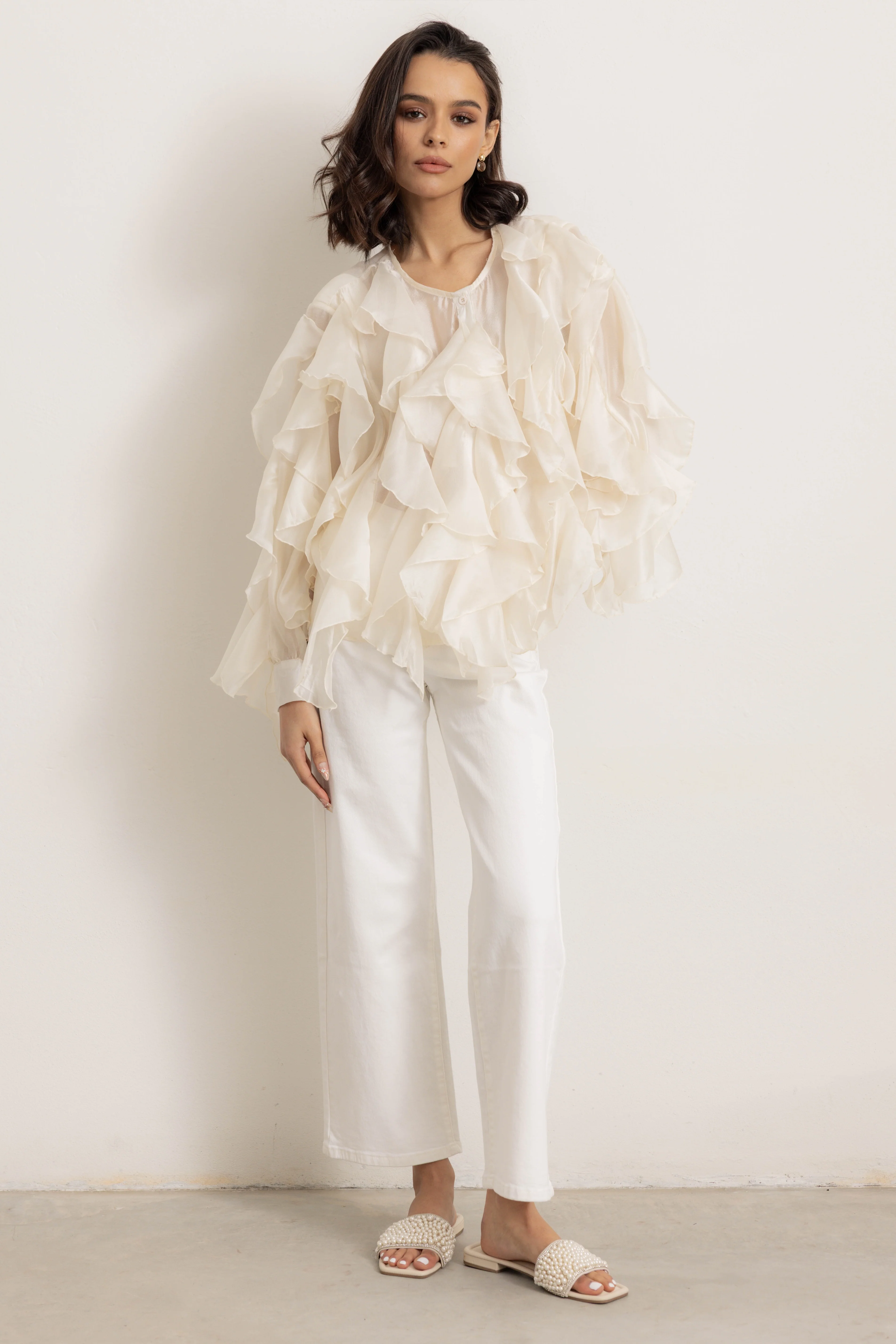 BUENOS AIRES - Camicia con balze (Bianco Avorio)