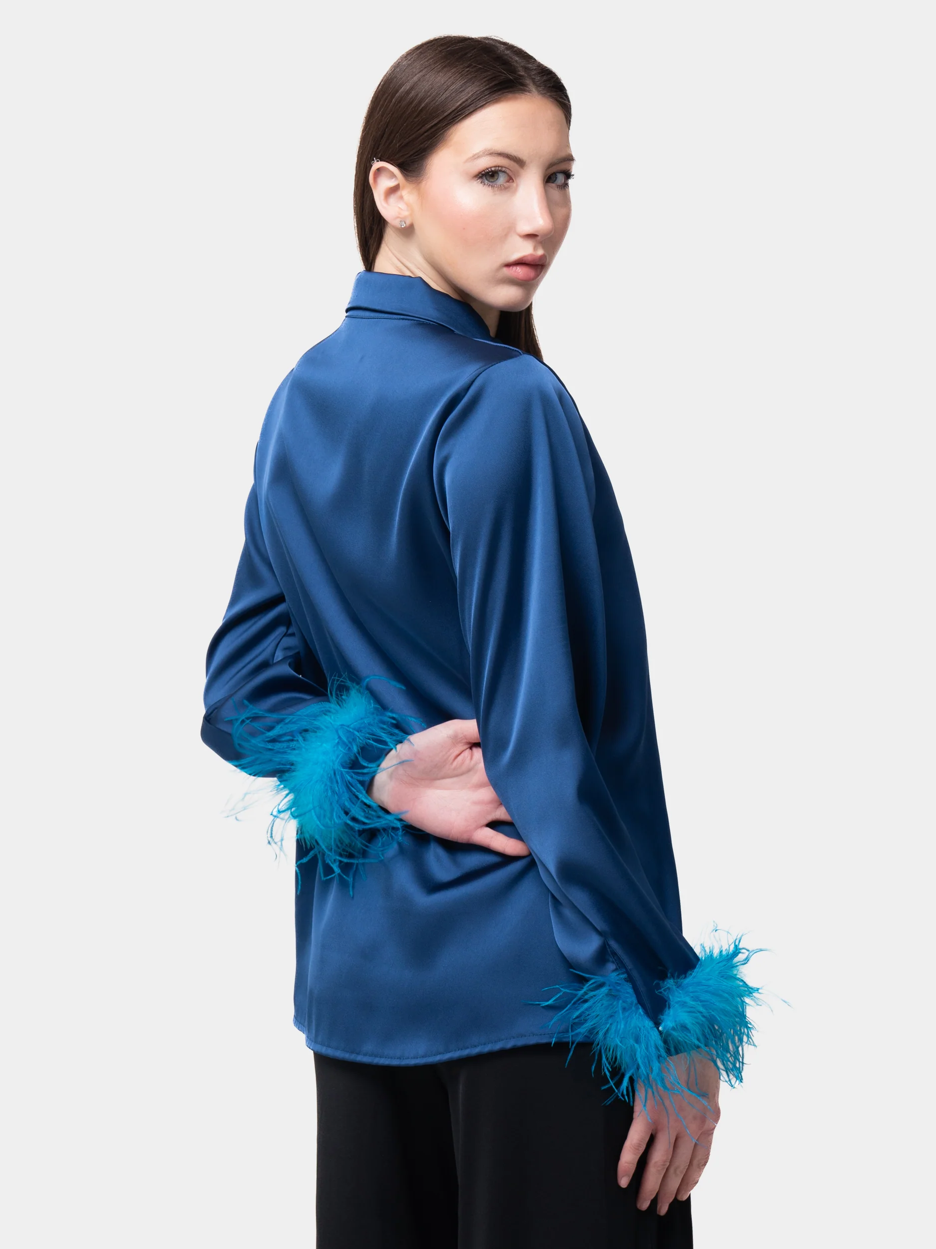 VERONA - Camicia con bordatura su polsi in marabù (Blu)