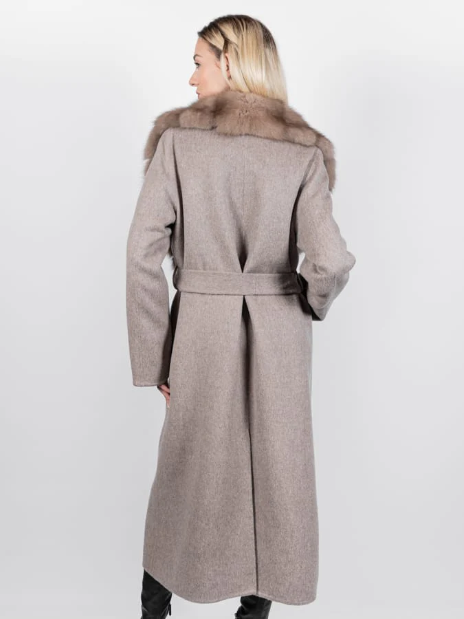 CALIFORNIA - Cappotto vestaglia in cashmere Loropiana con collo in zibellino (Grigio)