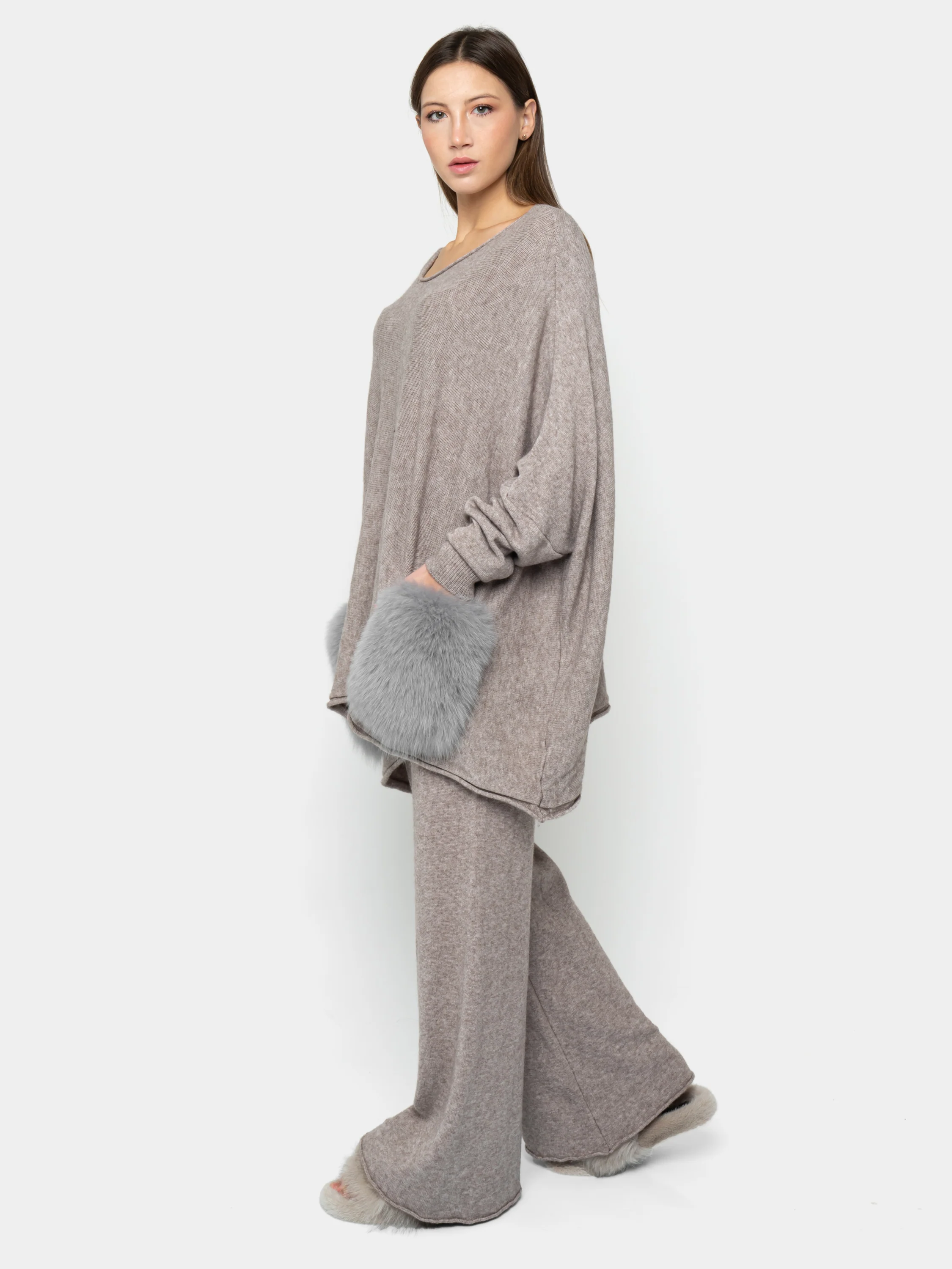 Il modello Capri è un’intramontabile best seller. Lo rende speciale la sua vestibilità che si adatta alle fisicità più esili, risultando morbido ed oversize, ma anche alle taglie più abbondanti, permettendo di vestire fino ad una XL. Lo completano le maxi tasche in pelliccia di volpe. Adatto sia di giorno che di sera, è il completo che non può mancare nel proprio guardaroba.