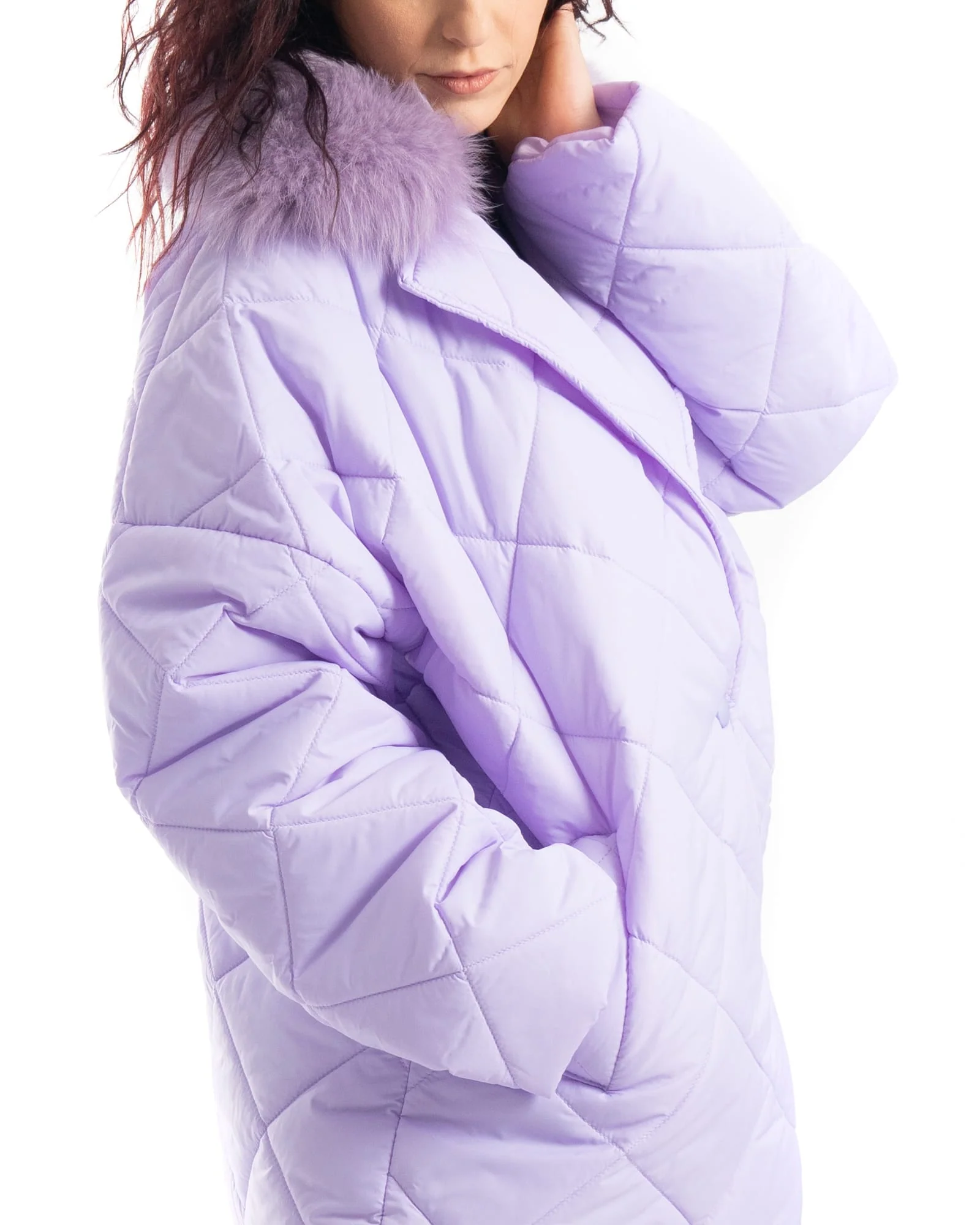 INNSBRUCK - Cappotto cento grammi con bordatura collo in volpe (Lilla)