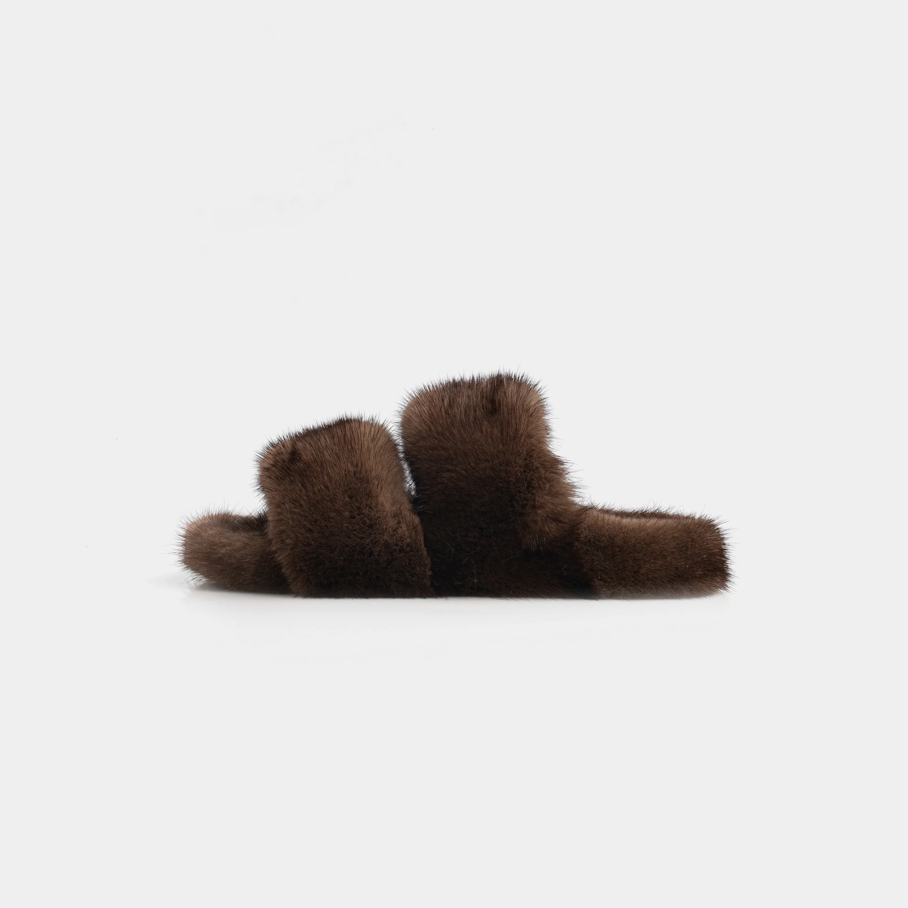 CORTINA - Slipper doppia fascia in visone (Marrone)