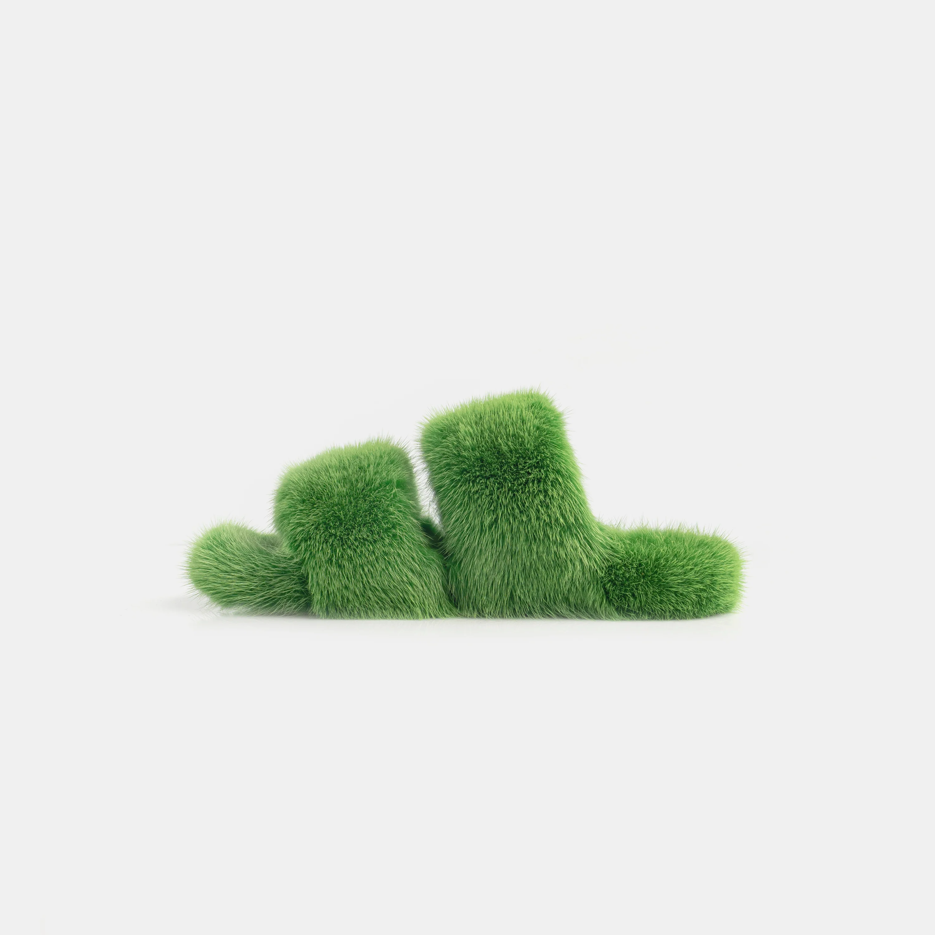 CORTINA - Slipper doppia fascia in visone (Verde)