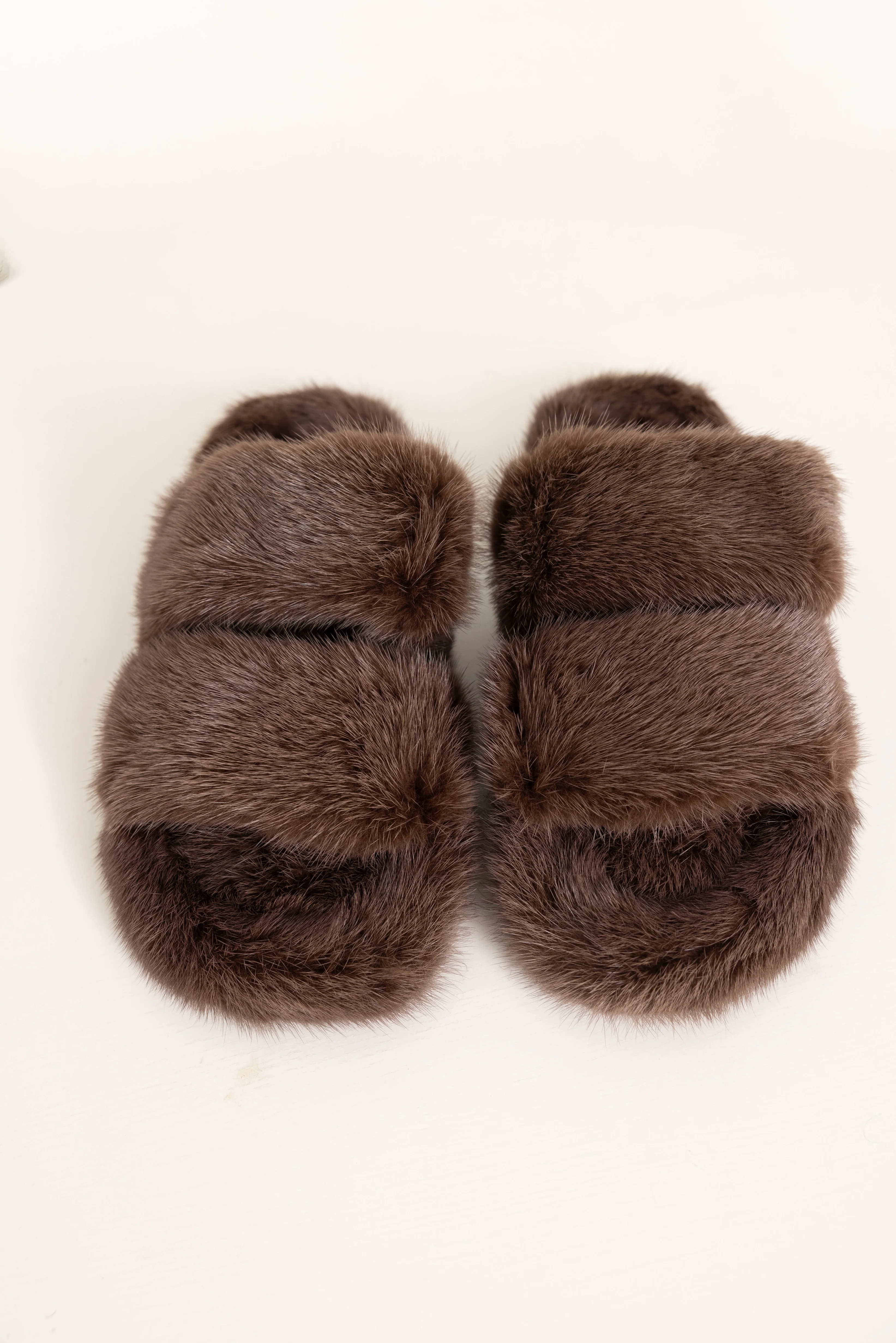 CORTINA - Slipper doppia fascia in visone (Marrone Cioccolato)