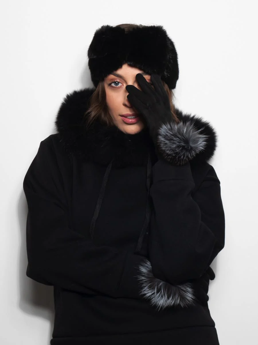 MONACO - Guanti con pompon in volpe (Nero)