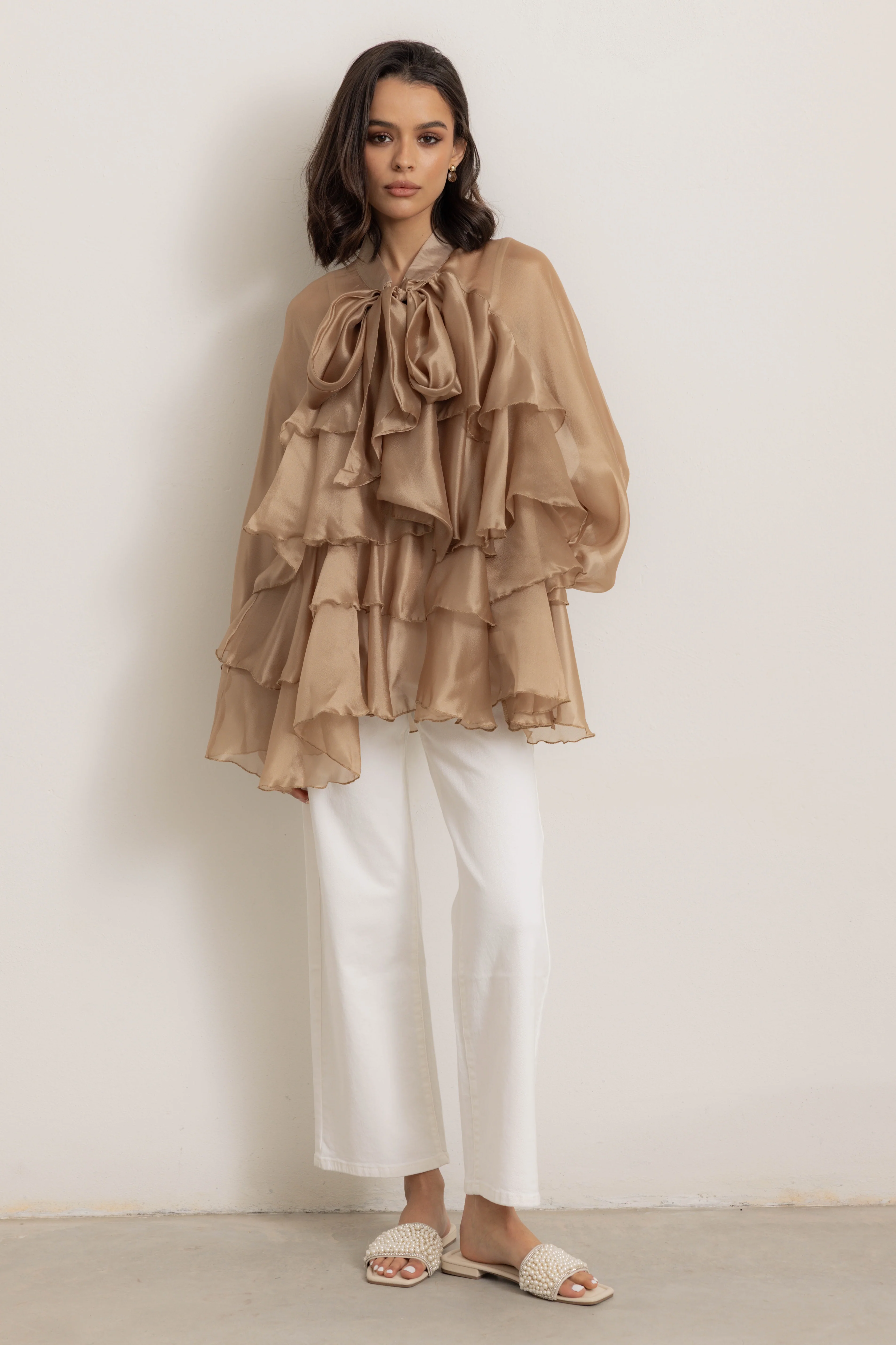 OLIMPIA - Camicia con fiocco e balze (Champagne)