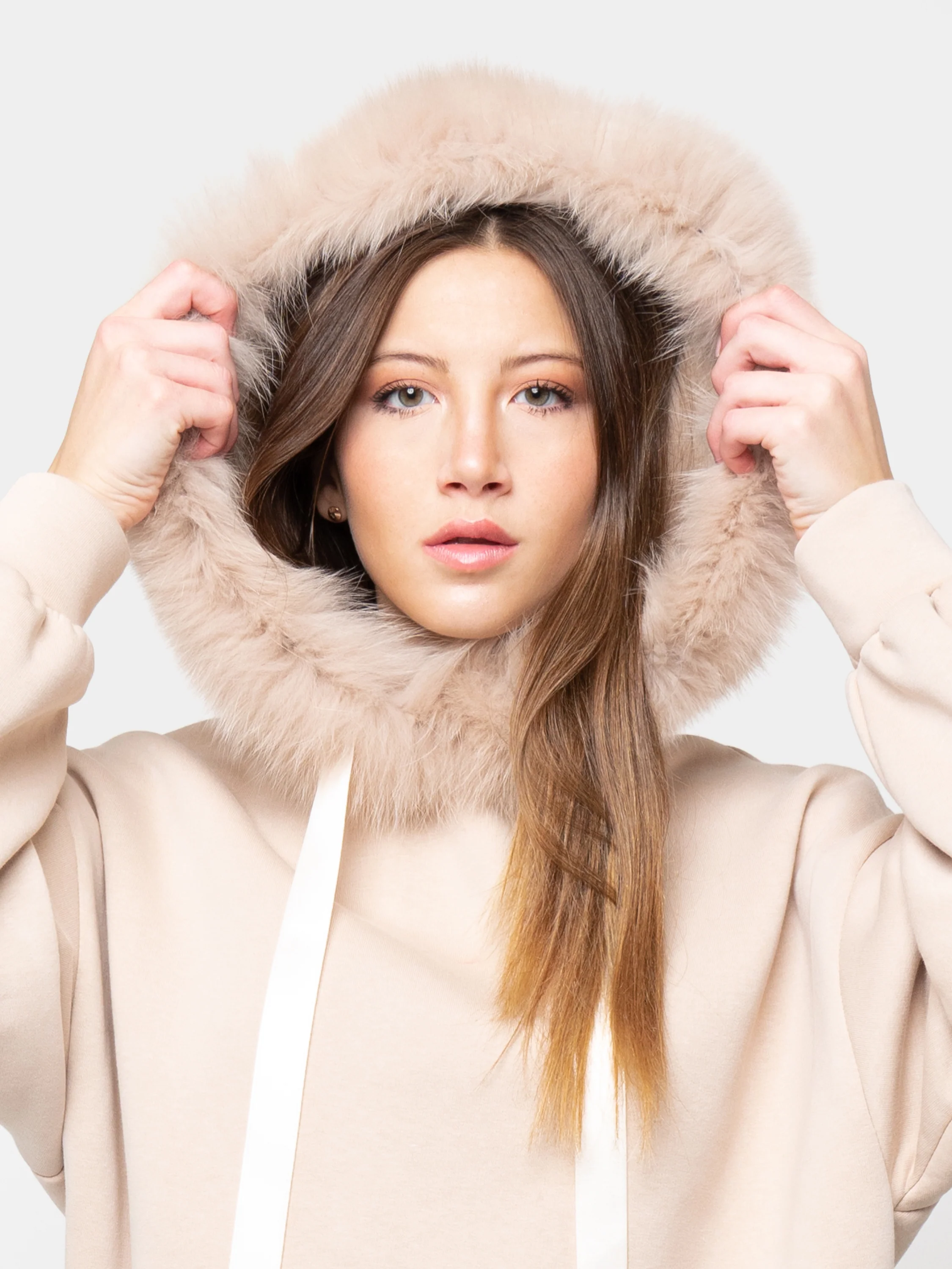 PORTO CERVO - Tuta con bordatura su cappuccio in volpe (Sabbia)