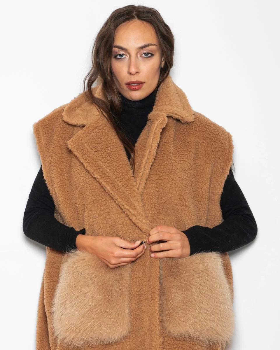 BERNA - Teddy smanicato con tasche in volpe (Beige)