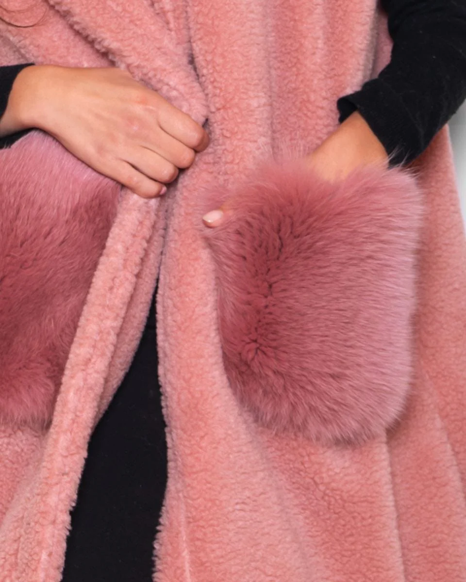 BERNA - Teddy smanicato con tasche in volpe (Rosa)