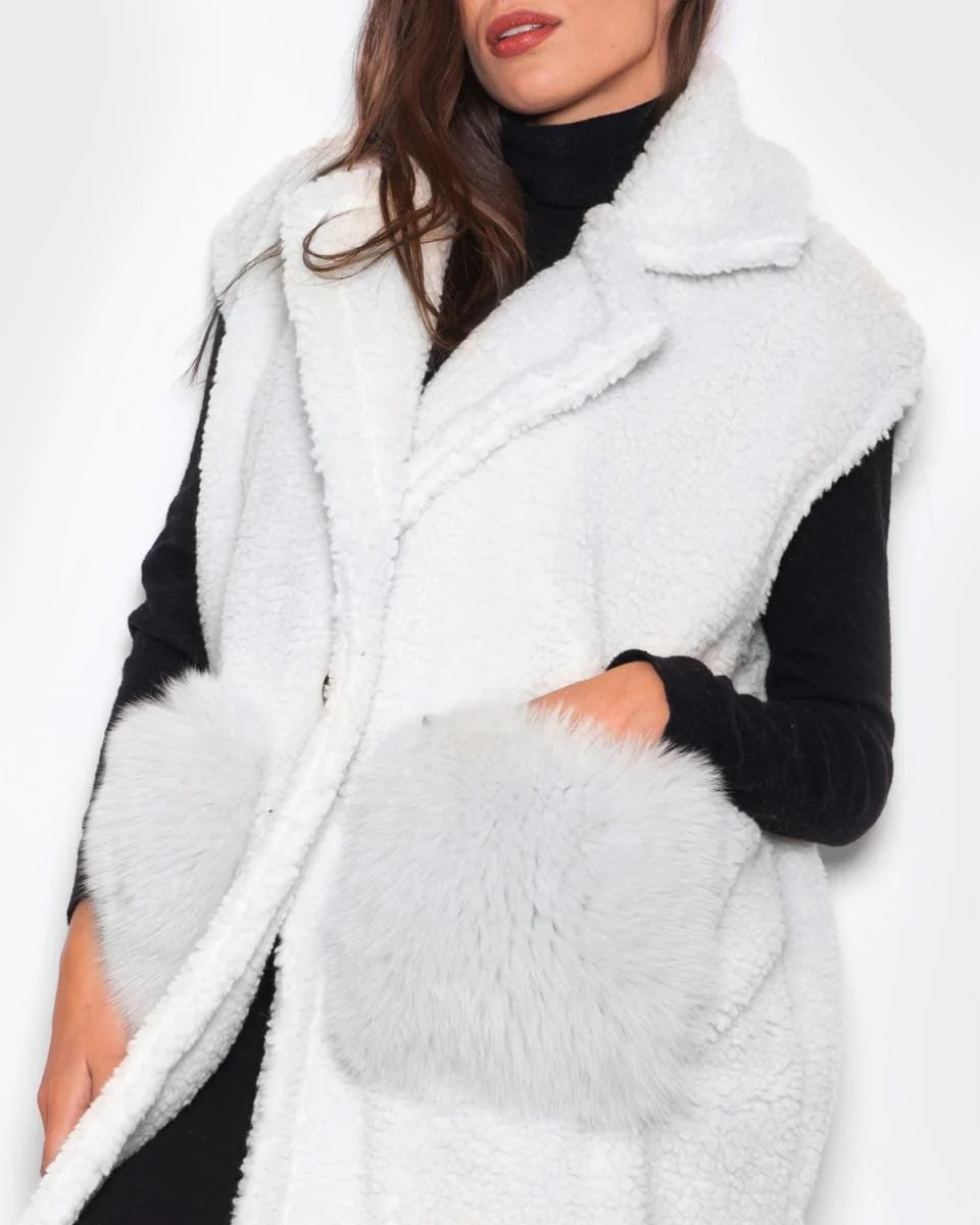 BERNA - Teddy smanicato con tasche in volpe (Bianco)