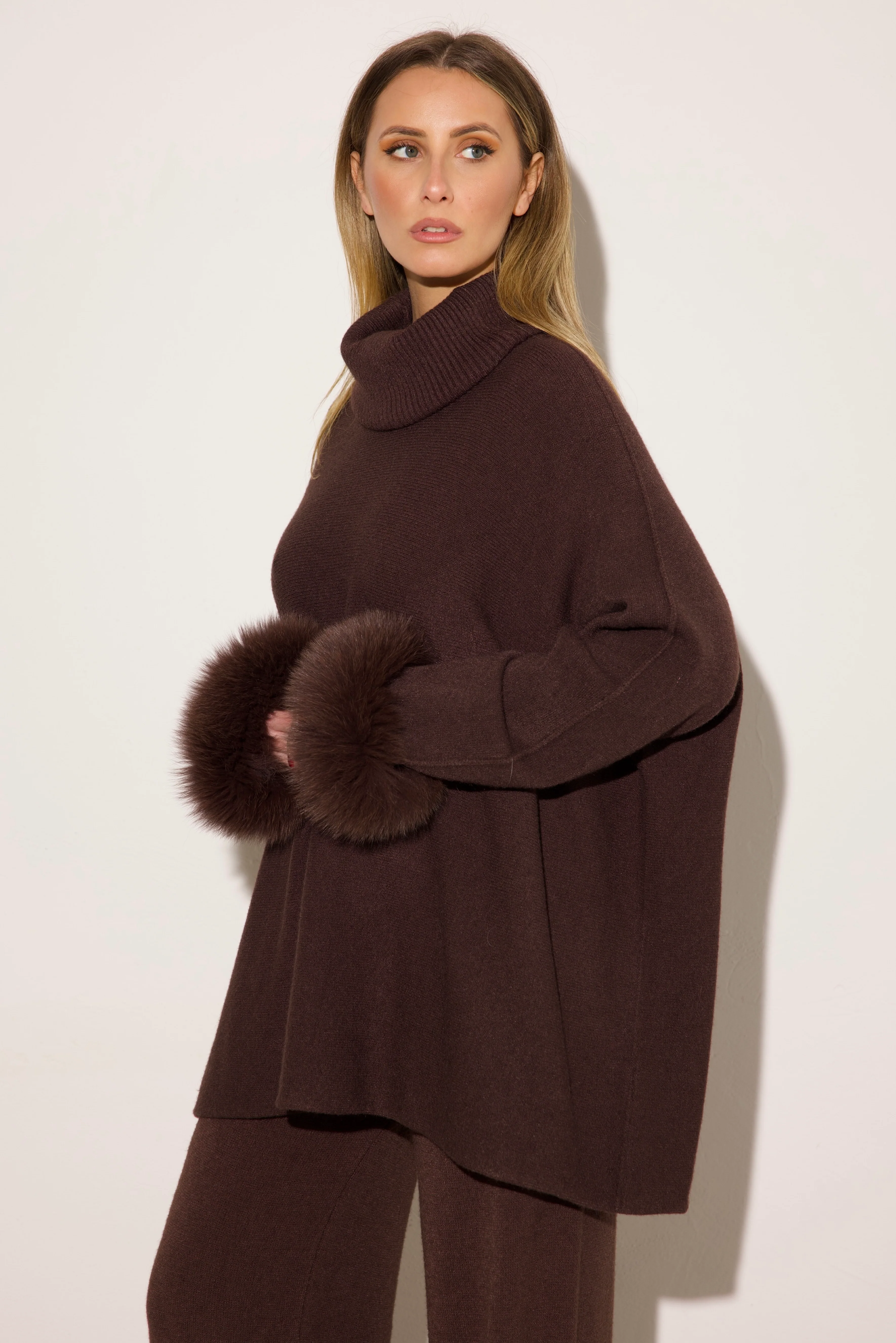 VENEZIA - Completo collo alto polsini in volpe (Marrone)