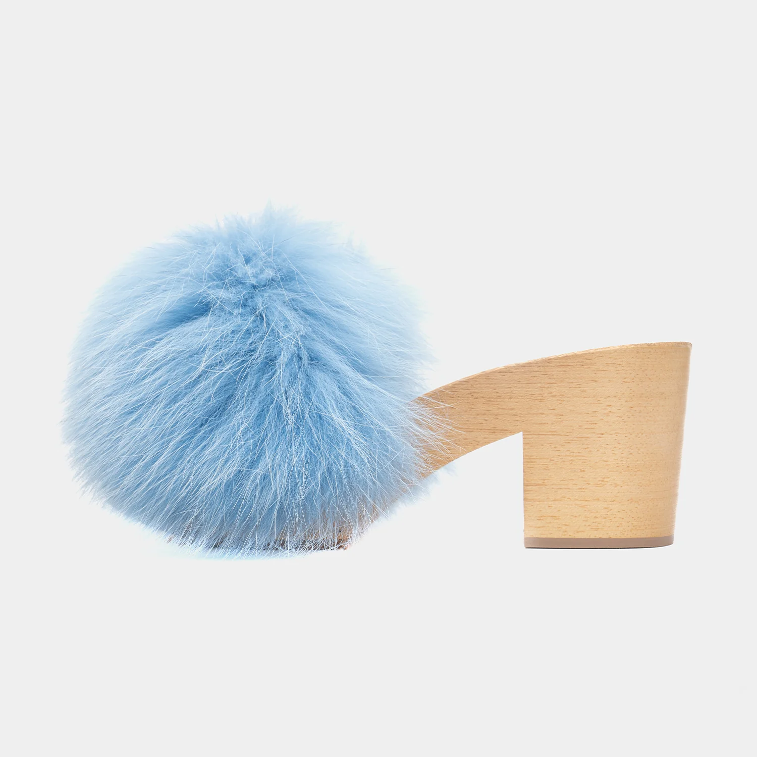 VERSILIA - Zoccolo in legno con fascia in volpe (Celeste)