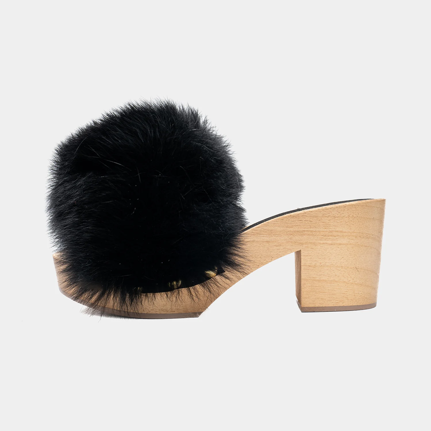 VERSILIA - Zoccolo in legno con fascia in volpe (Nero)