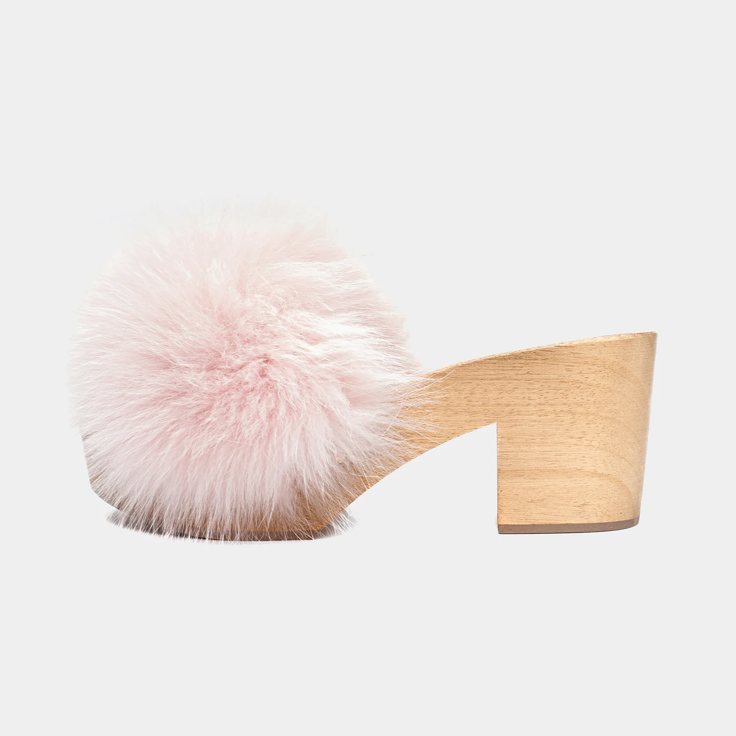 VERSILIA - Zoccolo in legno con fascia in volpe (Rosa)